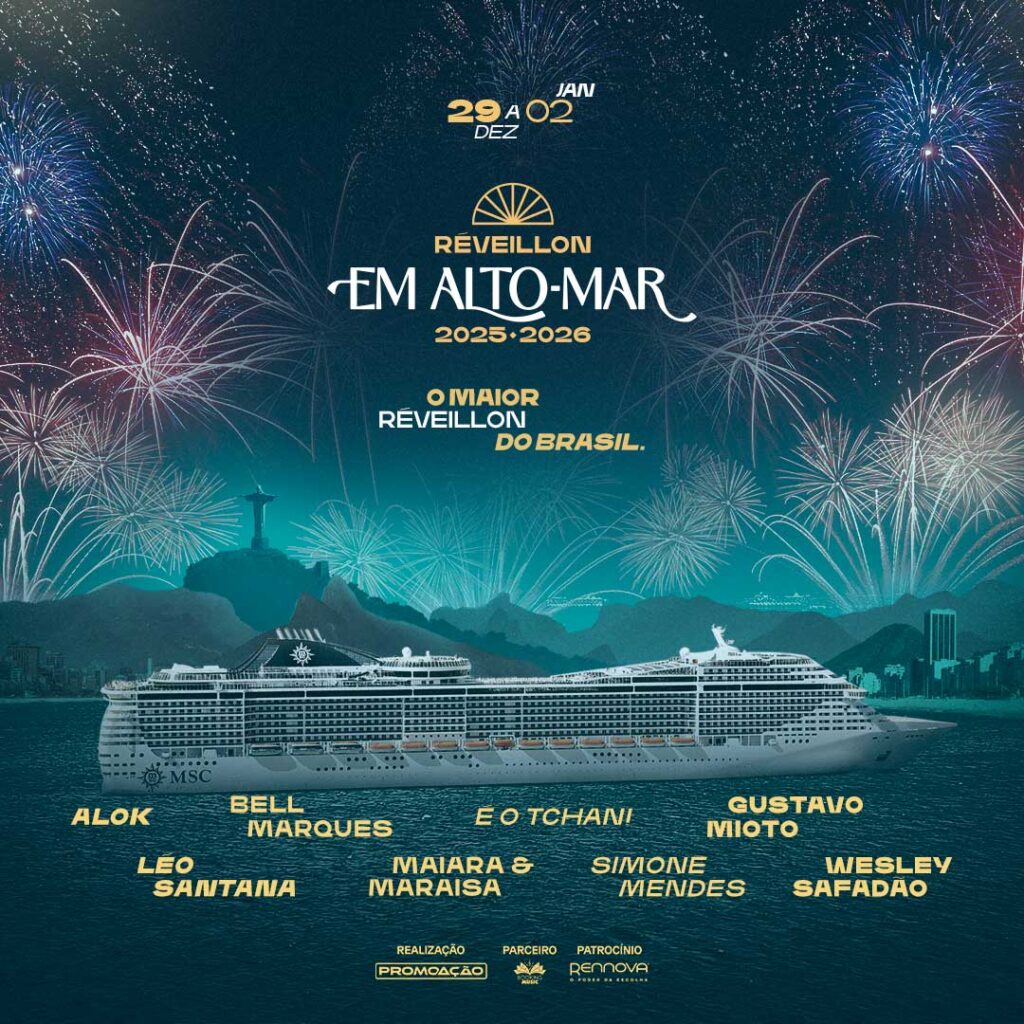 MSC Preziosa (Réveillon em alto Mar) | 29/12/2025 | 4 noites | Santos | Shows exclusivos incluídos: Alok, Wesley Safadão, Simone Mendes, Bell Marques, Maiara & Maraisa, Léo Santana, Gustavo Mioto e É o Tchan; | A partir de R$ 5.980 |